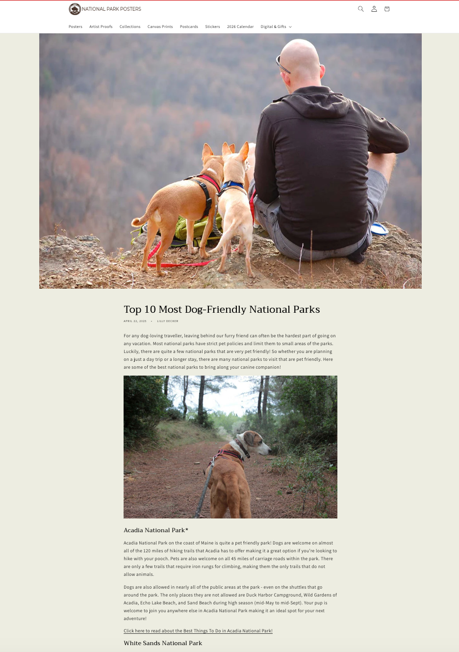This article, one of the top-performing pieces for National-Park-Posters.com, highlights the most dog-friendly national parks in the U.S.